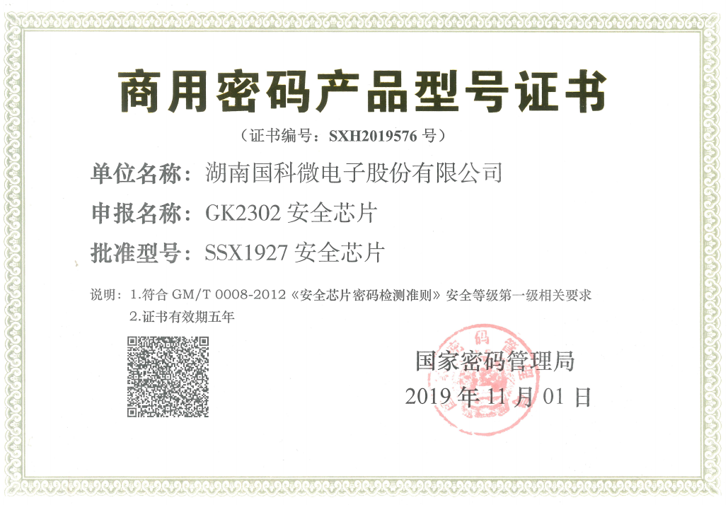商用密碼產(chǎn)品型號證書GK2302